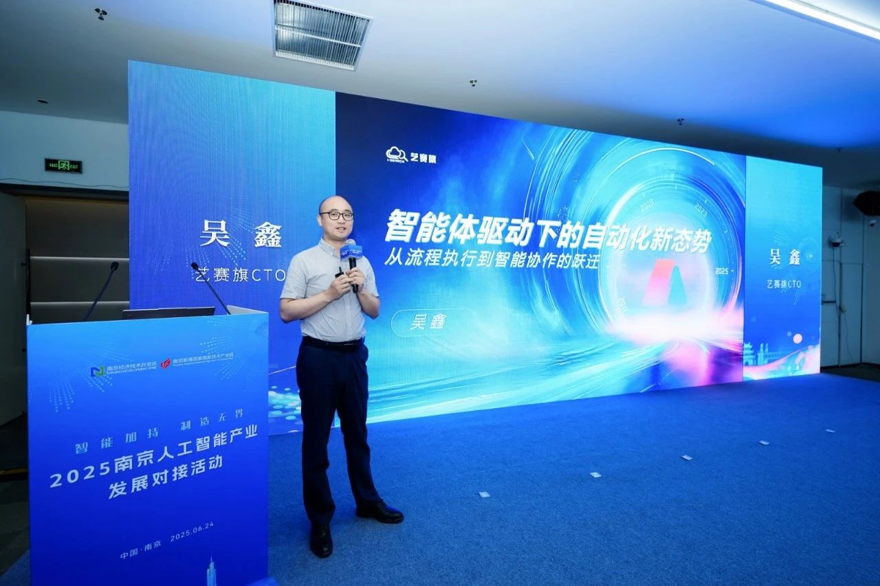 6 月 24 日,由南京经济技术开发区管委会主办、中国人工智能产业发展联盟参与承办的 2025 南京人工智能产业发展对接活动在南京智谷成功举办。作为中国超自动化行业的领航者,星空app官网登录官方网站受邀参加此次活动。公司联合创始人 & CTO 吴鑫在会上发表《智能体驱动下的自动化新态势 —— 从流程执行到智能协作的跃迁》主题演讲,并作为代表企业,与各方共同发布中国信息通信研究院可信智能体测试床平台 & 智能体产业图谱 1.0,为 AI 应用大规模落地提供了新思路与新场景。